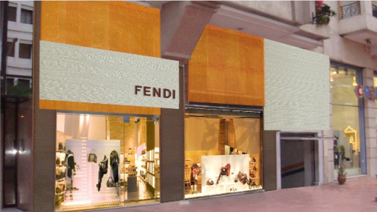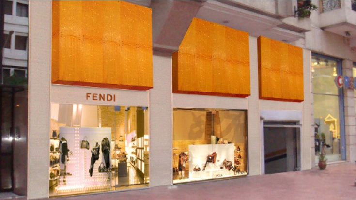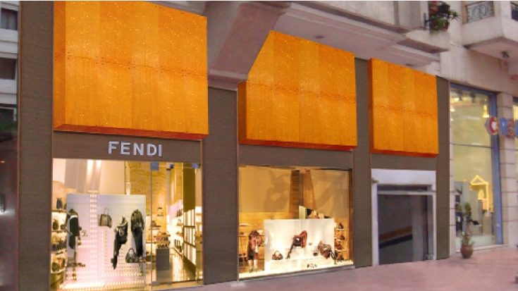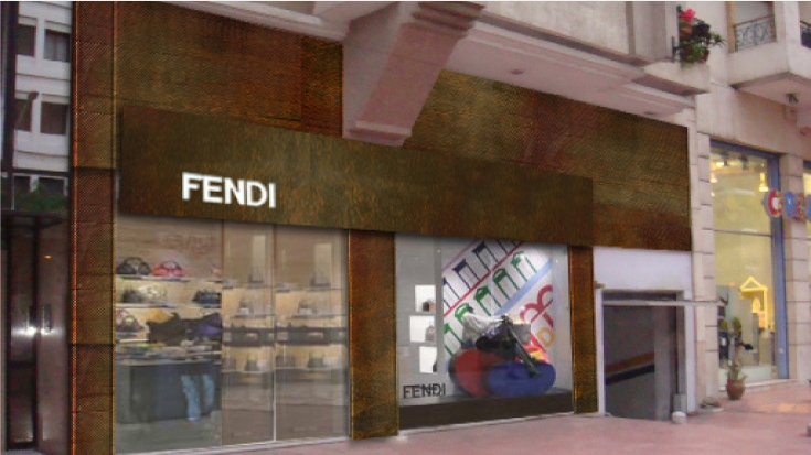 Casablanca's store is located in the commercial center of Casablanca. We played with geometries and we have put on trial different options coming up with the final decision to work on the facade that has got cube-windows coming out on the main street at the first floor (VIP area) and have an impactive light effect on both out and in side of the window. The restantant part of the facade that goes around these lightened windows is made of ribbed corten foil.