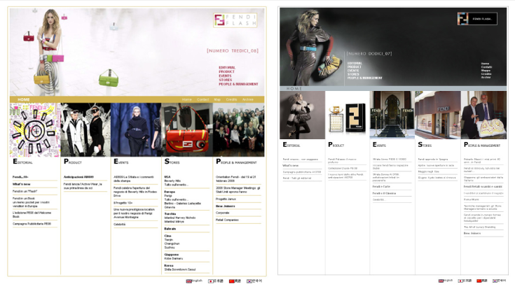 Interface Design and Web Development for Fendi, italian fashion house.